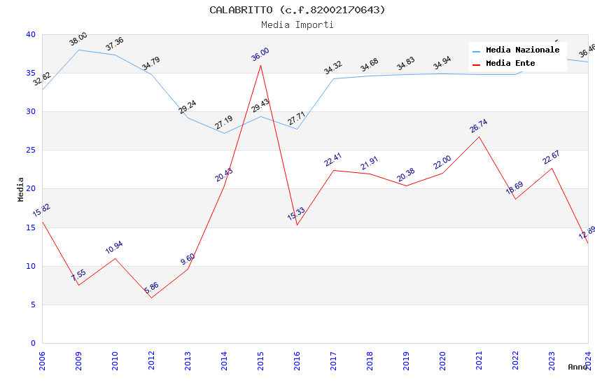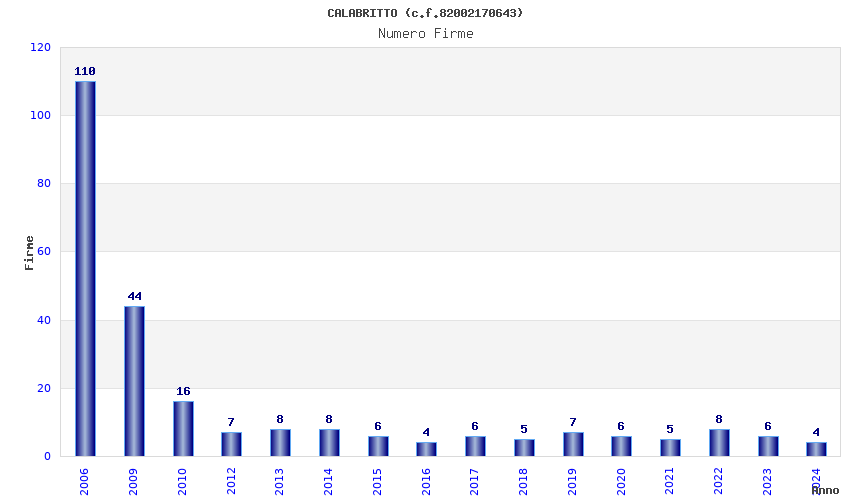 | Anno | Firme | Importi | Media | Naz. | Reg. | Prov. | Comu. |