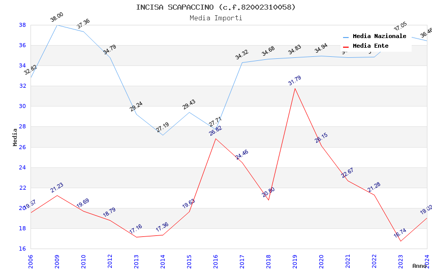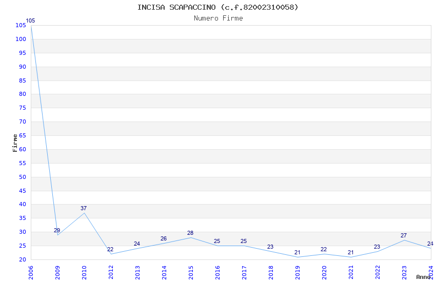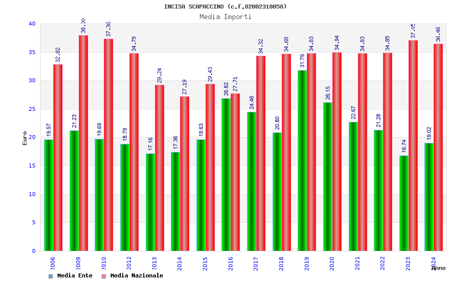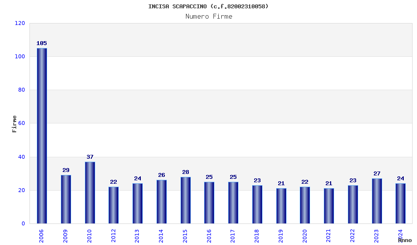 | Anno | Firme | Importi | Media | Naz. | Reg. | Prov. | Comu. |