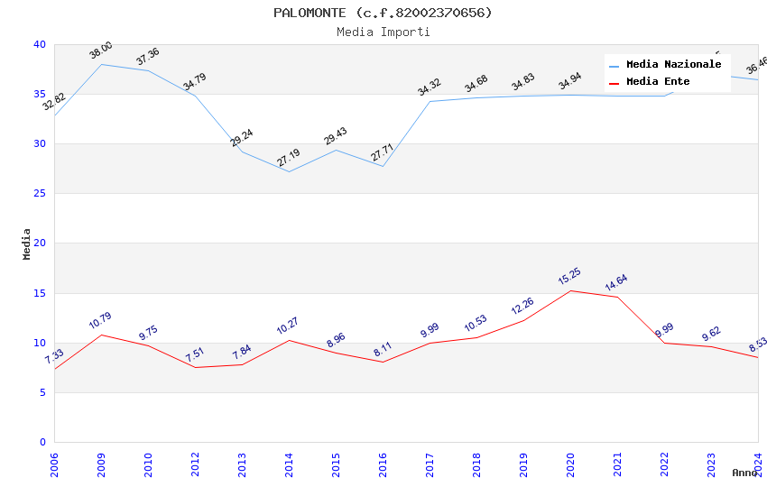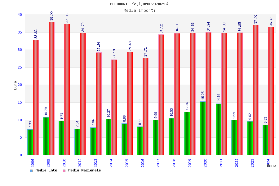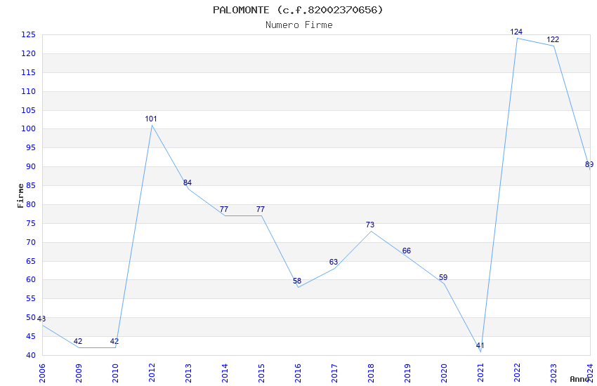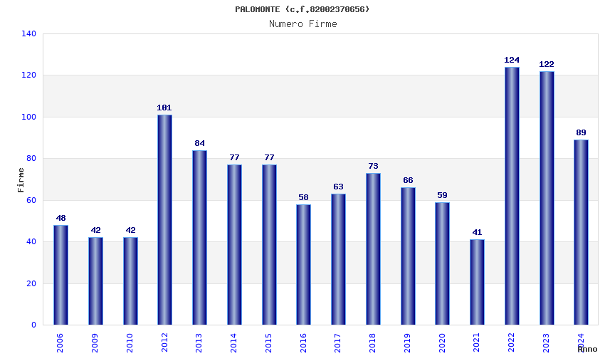 | Anno | Firme | Importi | Media | Naz. | Reg. | Prov. | Comu. |