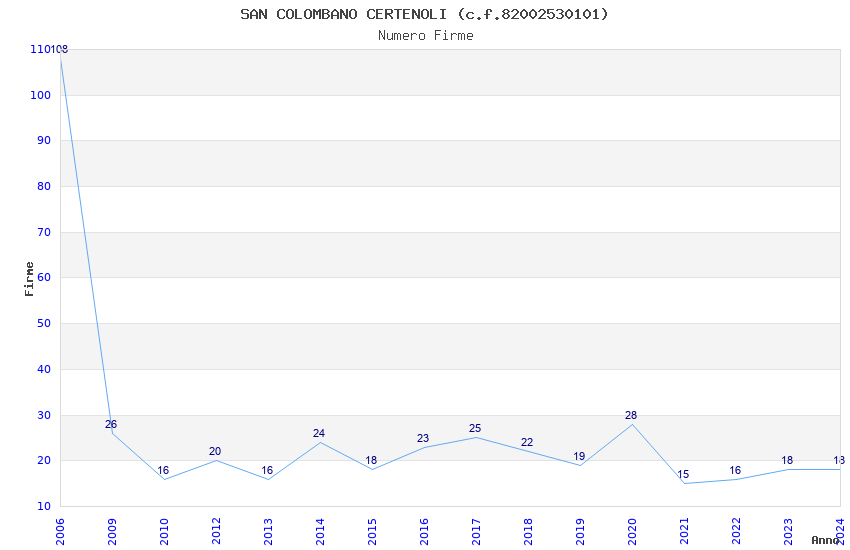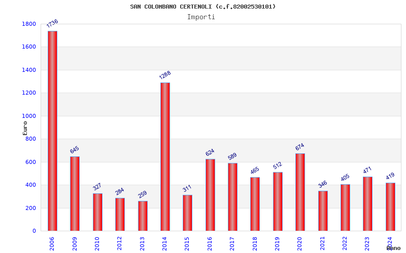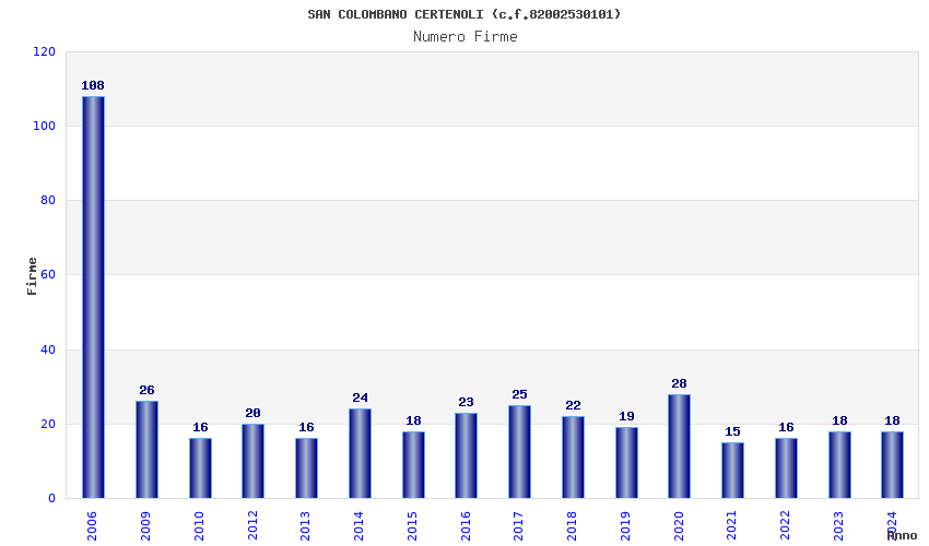| Anno | Firme | Importi | Media | Naz. | Reg. | Prov. | Comu. |