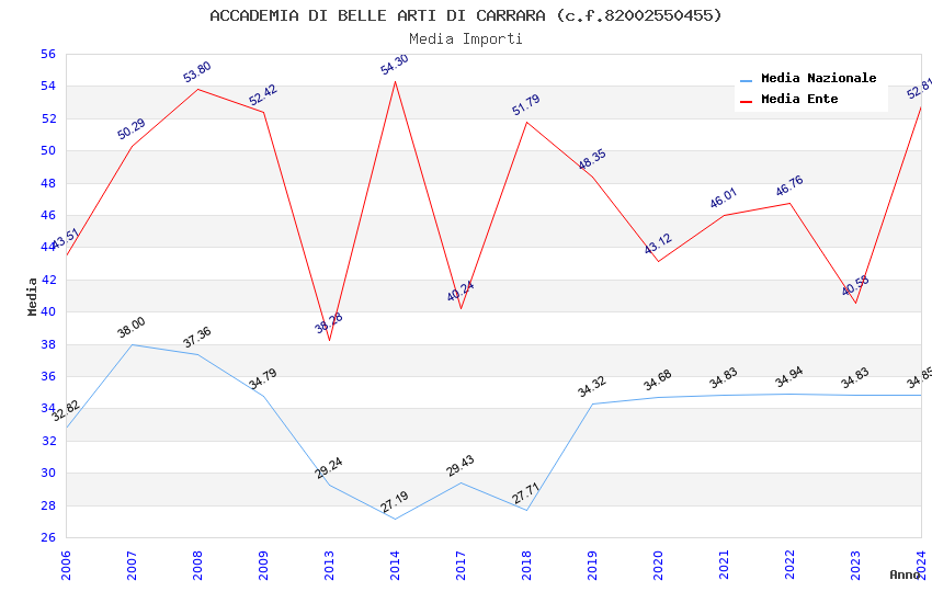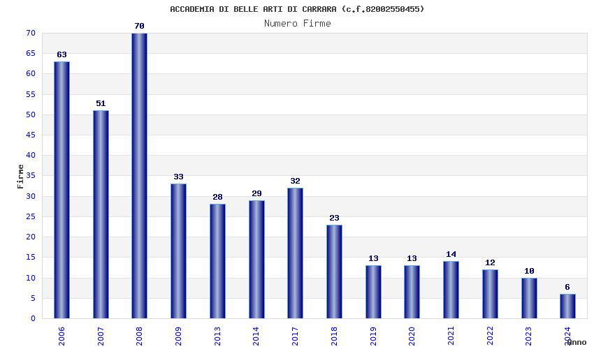 | Anno | Firme | Importi | Media | Naz. | Reg. | Prov. | Comu. |