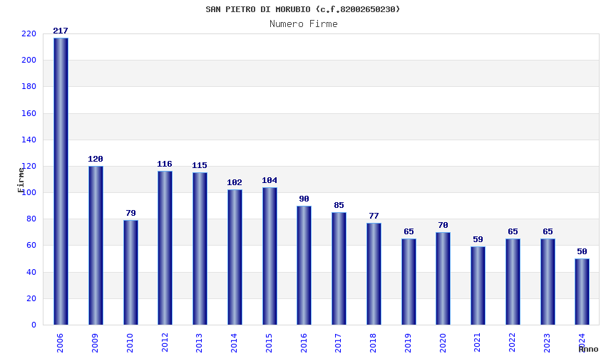 | Anno | Firme | Importi | Media | Naz. | Reg. | Prov. | Comu. |