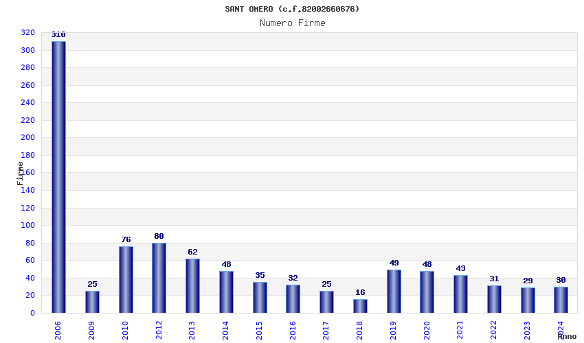 | Anno | Firme | Importi | Media | Naz. | Reg. | Prov. | Comu. |