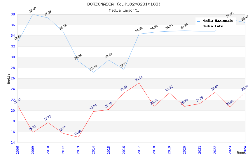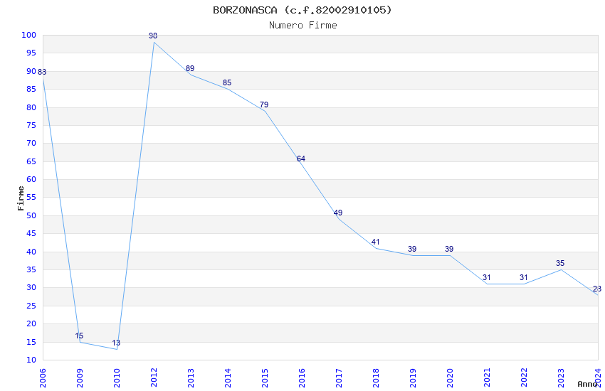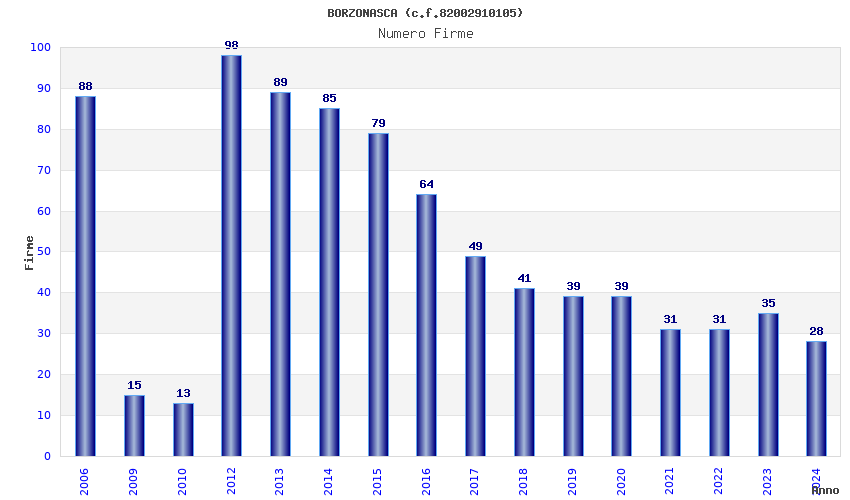 | Anno | Firme | Importi | Media | Naz. | Reg. | Prov. | Comu. |