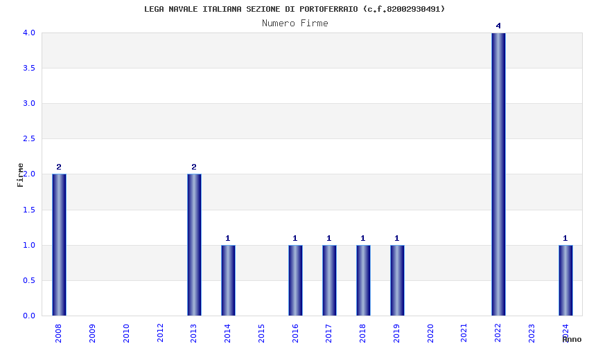 | Anno | Firme | Importi | Media | Naz. | Reg. | Prov. | Comu. |