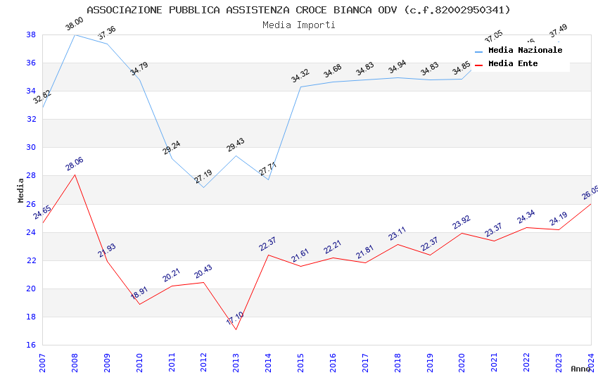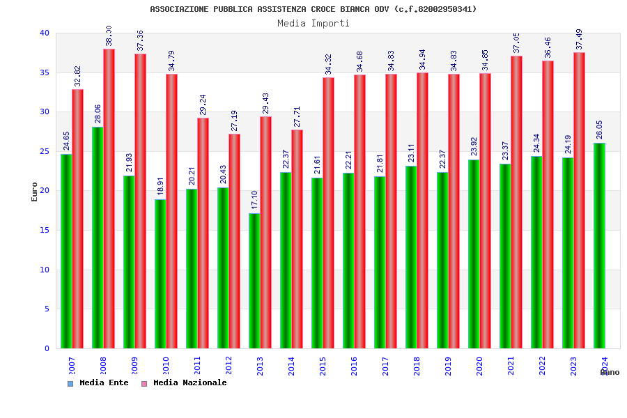 | Anno | Firme | Importi | Media | Naz. | Reg. | Prov. | Comu. |