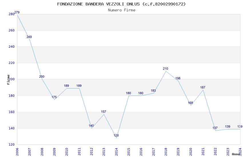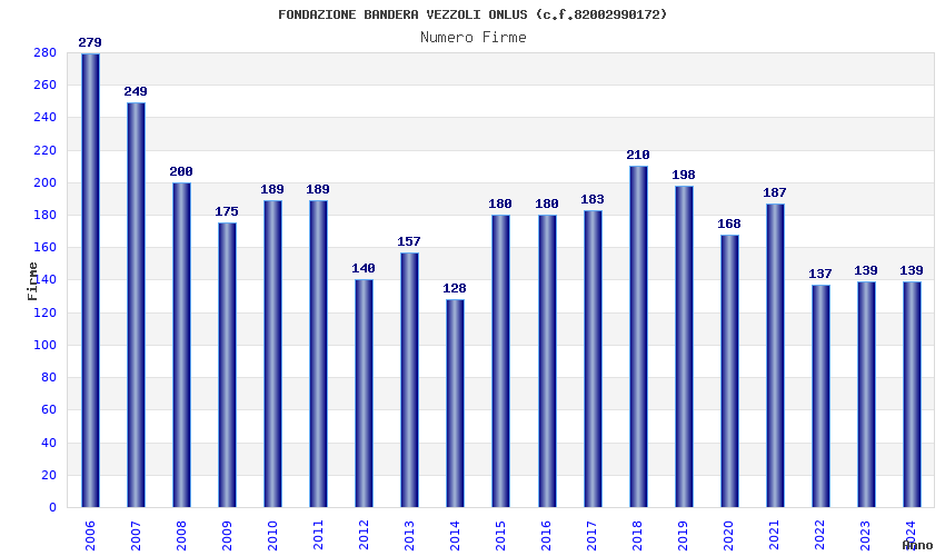 | Anno | Firme | Importi | Media | Naz. | Reg. | Prov. | Comu. |