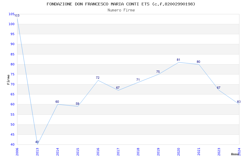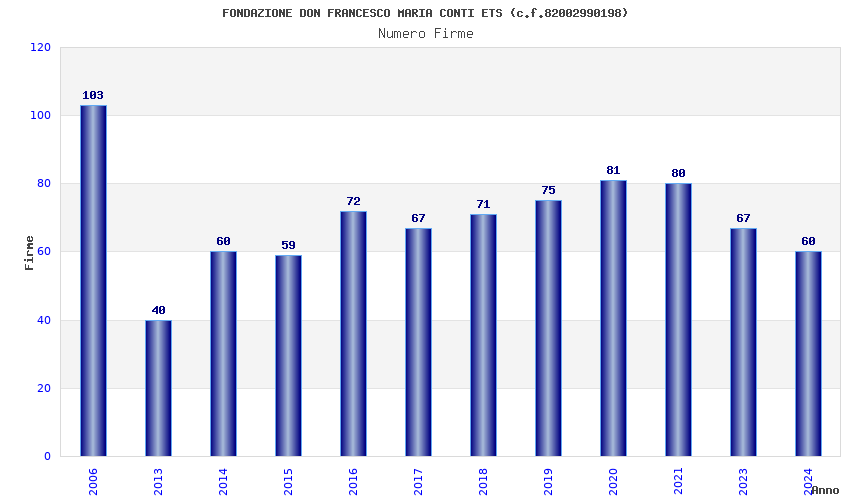 | Anno | Firme | Importi | Media | Naz. | Reg. | Prov. | Comu. |