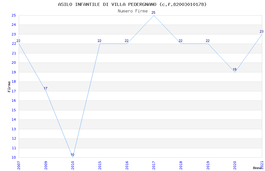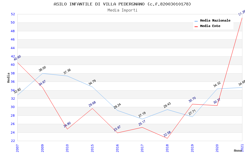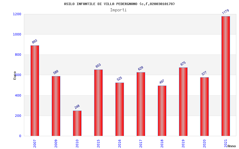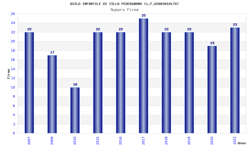 | Anno | Firme | Importi | Media | Naz. | Reg. | Prov. | Comu. |