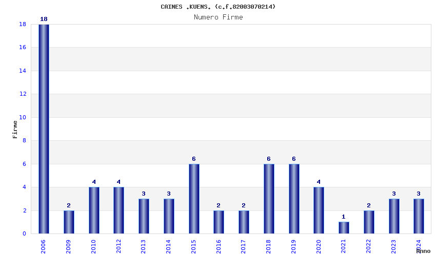 | Anno | Firme | Importi | Media | Naz. | Reg. | Prov. | Comu. |