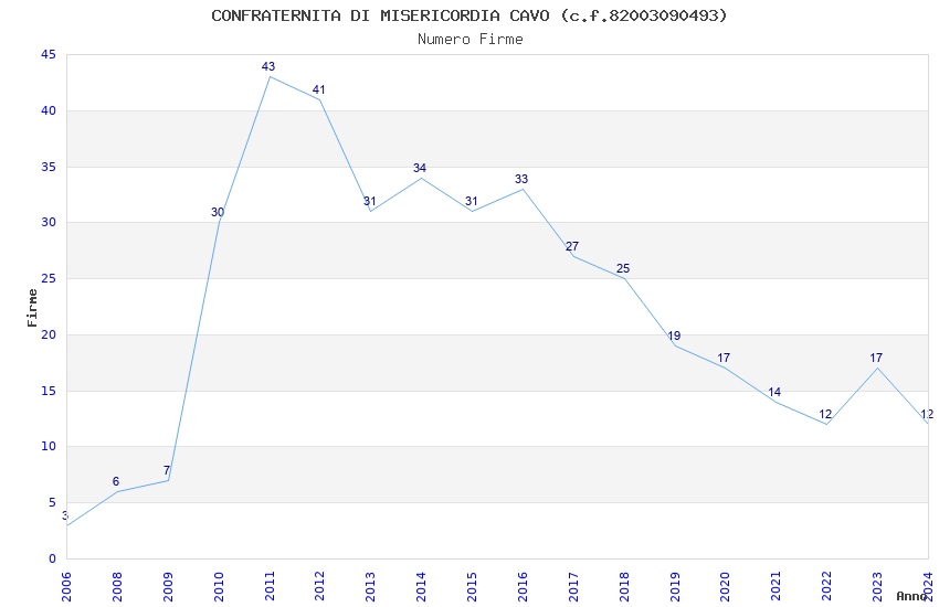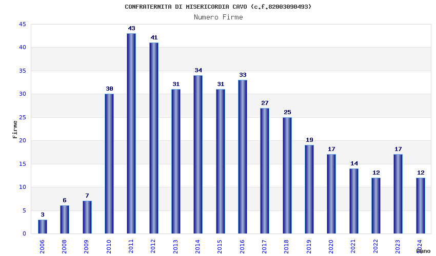| Anno | Firme | Importi | Media | Naz. | Reg. | Prov. | Comu. |