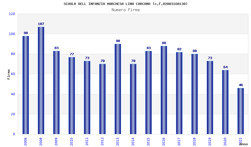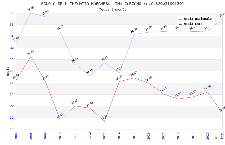| Anno | Firme | Importi | Media | Naz. | Reg. | Prov. | Comu. |
