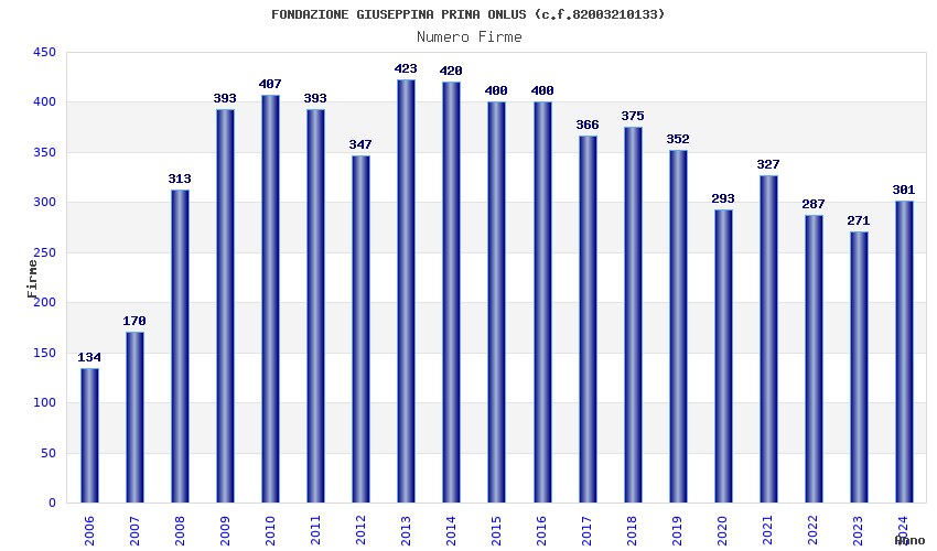 Anno Firme Importi Media Naz. Reg. Prov. Comu.