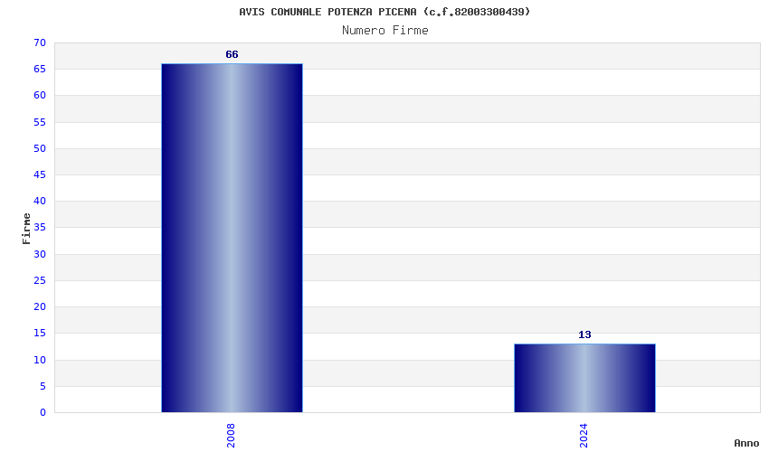 | Anno | Firme | Importi | Media | Naz. | Reg. | Prov. | Comu. |