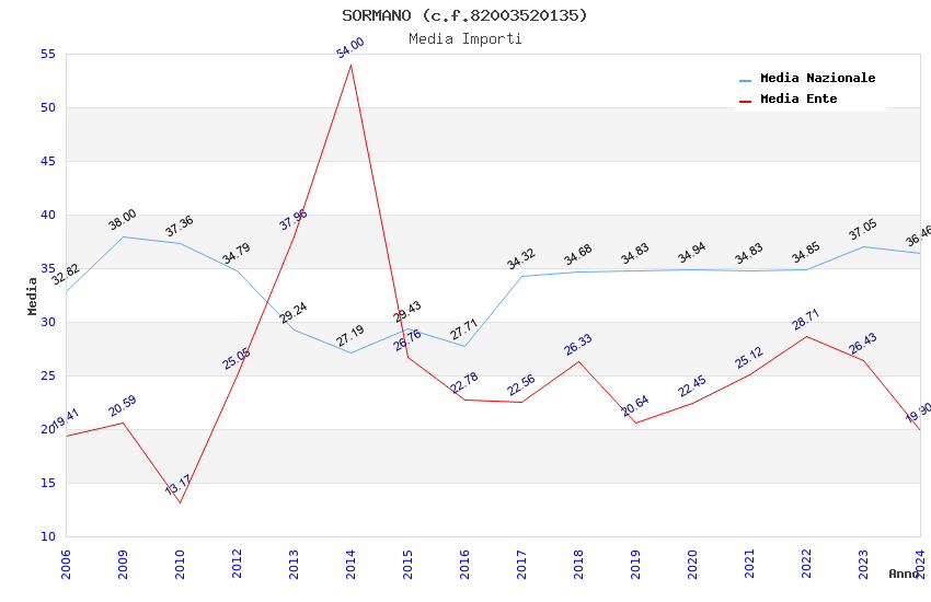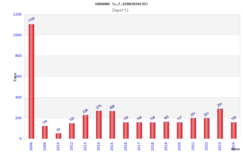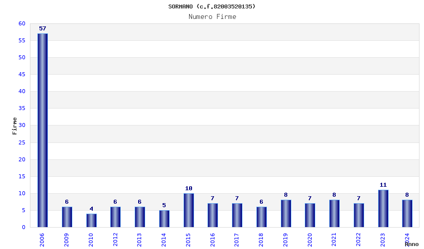 | Anno | Firme | Importi | Media | Naz. | Reg. | Prov. | Comu. |