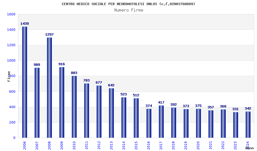 | Anno | Firme | Importi | Media | Naz. | Reg. | Prov. | Comu. |