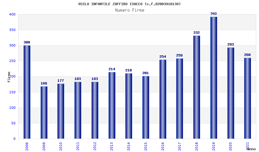 | Anno | Firme | Importi | Media | Naz. | Reg. | Prov. | Comu. |
