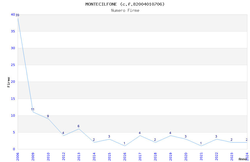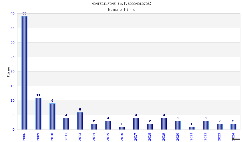 | Anno | Firme | Importi | Media | Naz. | Reg. | Prov. | Comu. |
