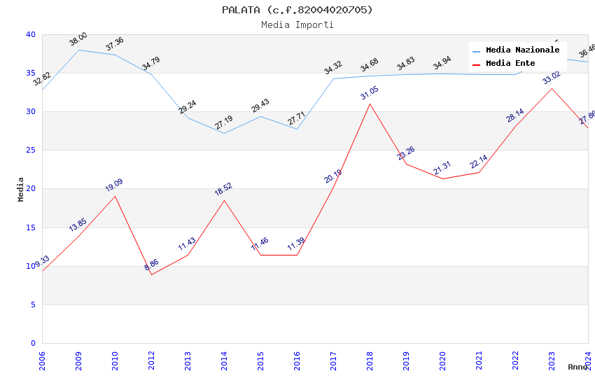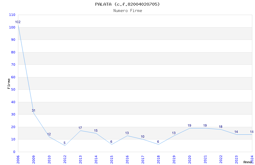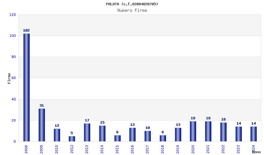| Anno | Firme | Importi | Media | Naz. | Reg. | Prov. | Comu. |