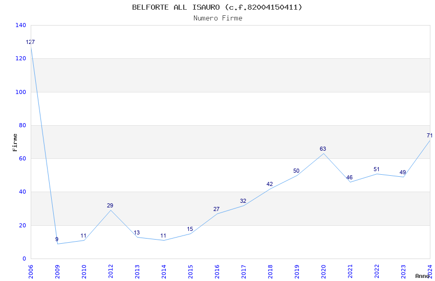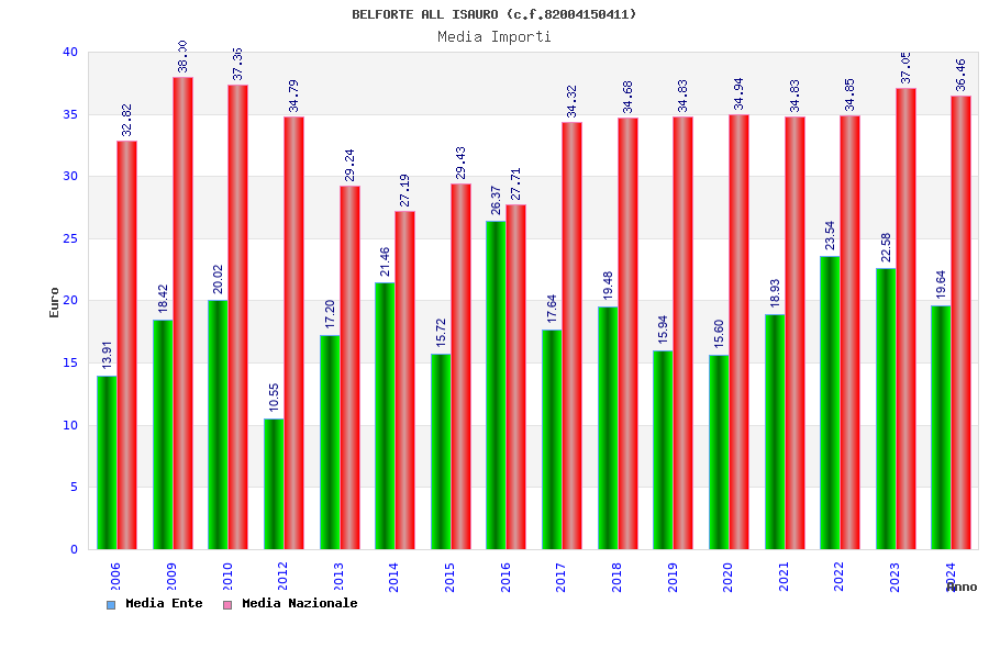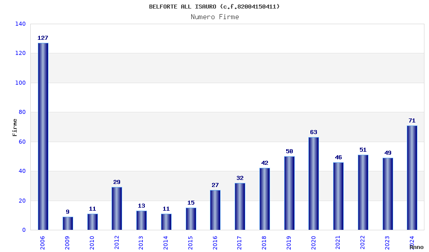 | Anno | Firme | Importi | Media | Naz. | Reg. | Prov. | Comu. |