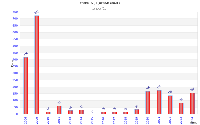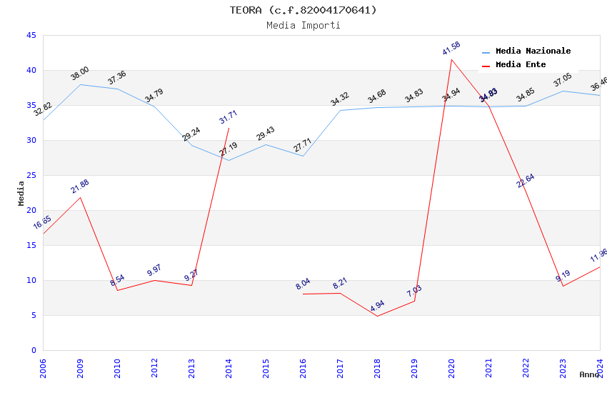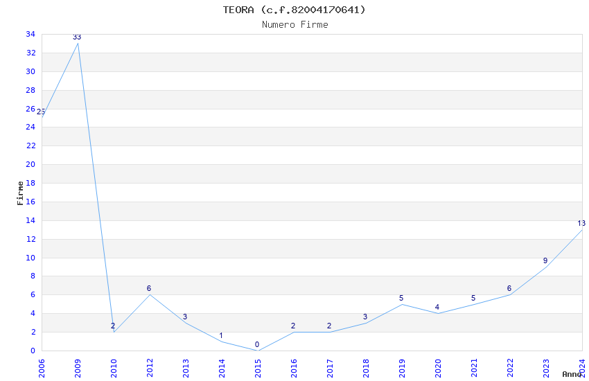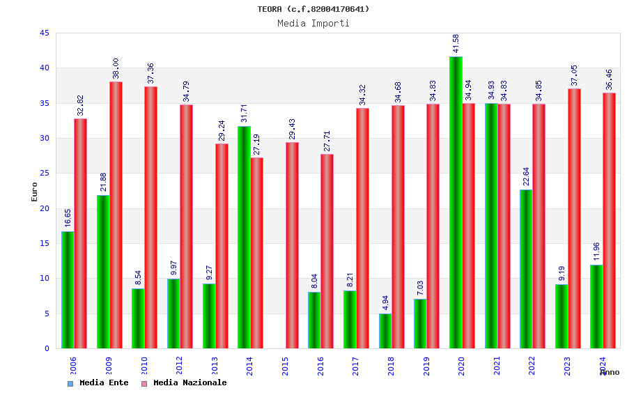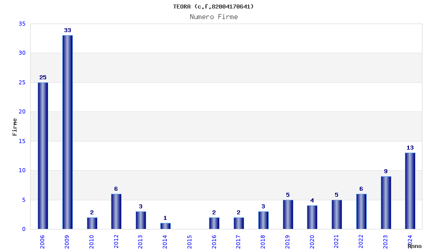 | Anno | Firme | Importi | Media | Naz. | Reg. | Prov. | Comu. |