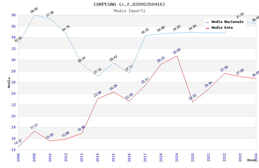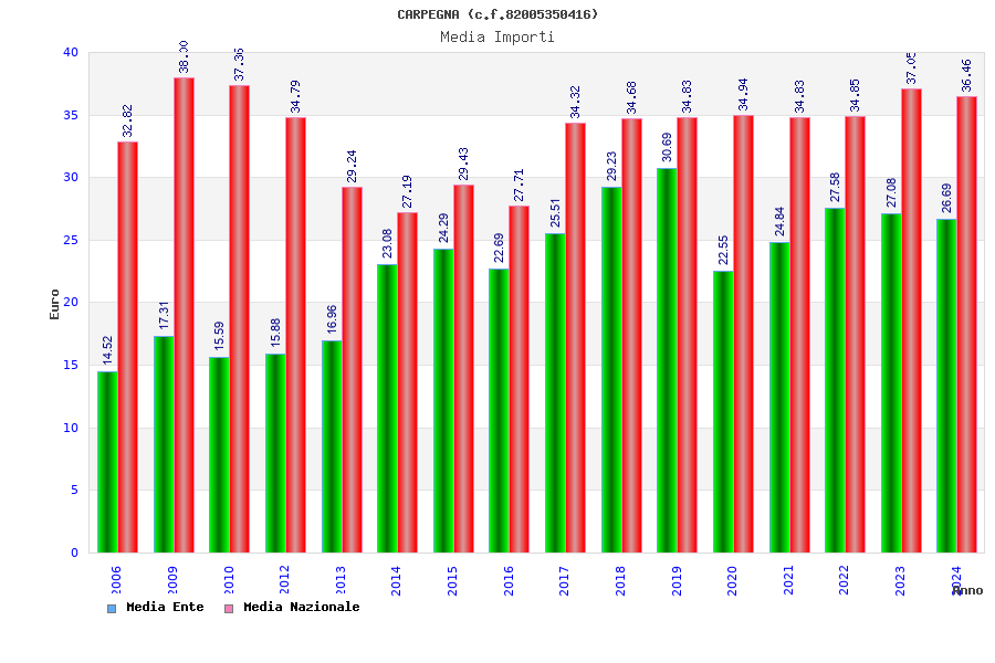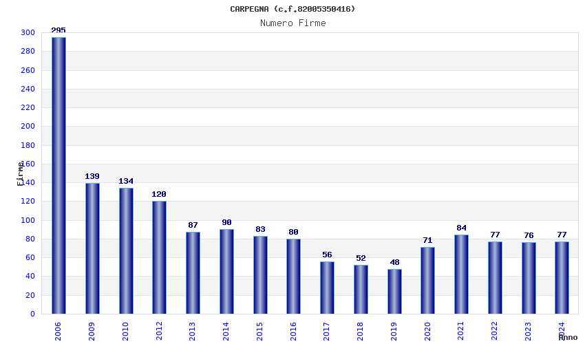 | Anno | Firme | Importi | Media | Naz. | Reg. | Prov. | Comu. |