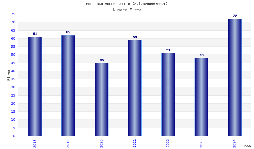 | Anno | Firme | Importi | Media | Naz. | Reg. | Prov. | Comu. |