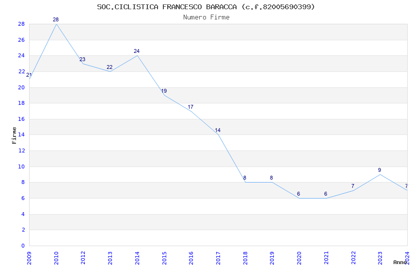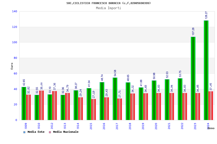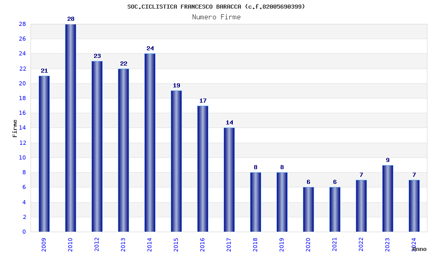 | Anno | Firme | Importi | Media | Naz. | Reg. | Prov. | Comu. |