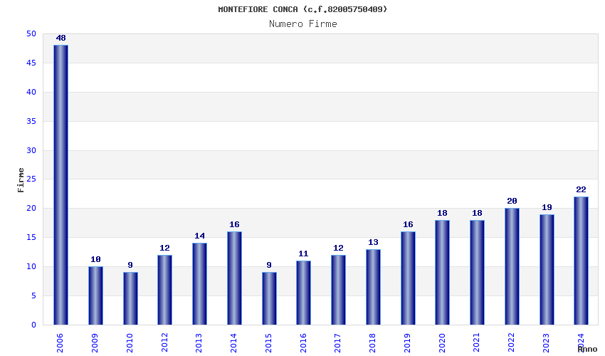 | Anno | Firme | Importi | Media | Naz. | Reg. | Prov. | Comu. |