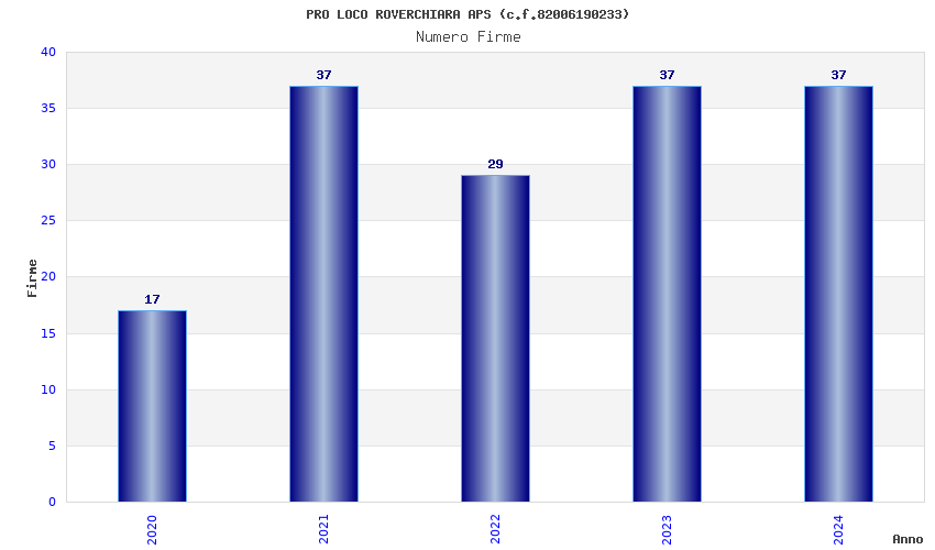 | Anno | Firme | Importi | Media | Naz. | Reg. | Prov. | Comu. |