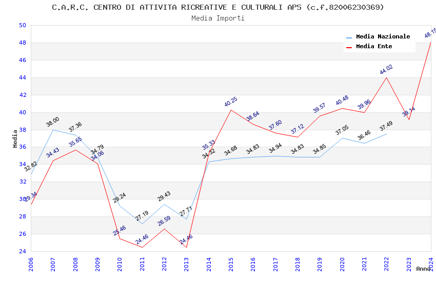 | Anno | Firme | Importi | Media | Naz. | Reg. | Prov. | Comu. |