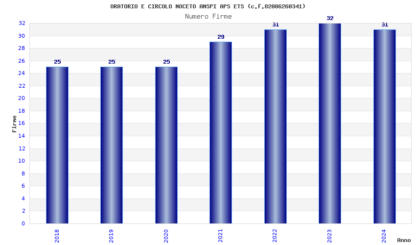 | Anno | Firme | Importi | Media | Naz. | Reg. | Prov. | Comu. |