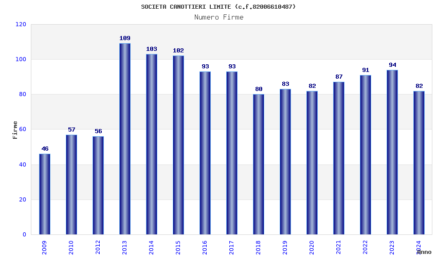| 2009 | 46 | 2.648,47 | 57,58 | 14.075 | 927 | 291 | 3 |