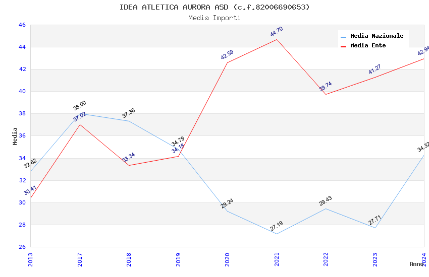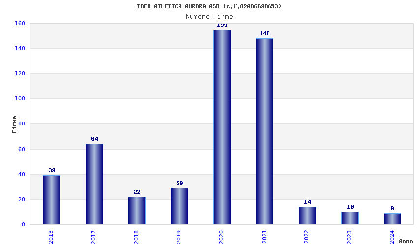 | Anno | Firme | Importi | Media | Naz. | Reg. | Prov. | Comu. |
