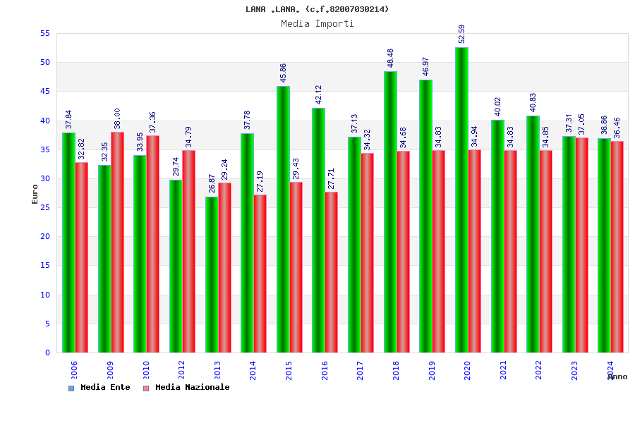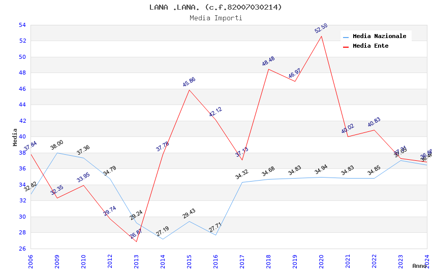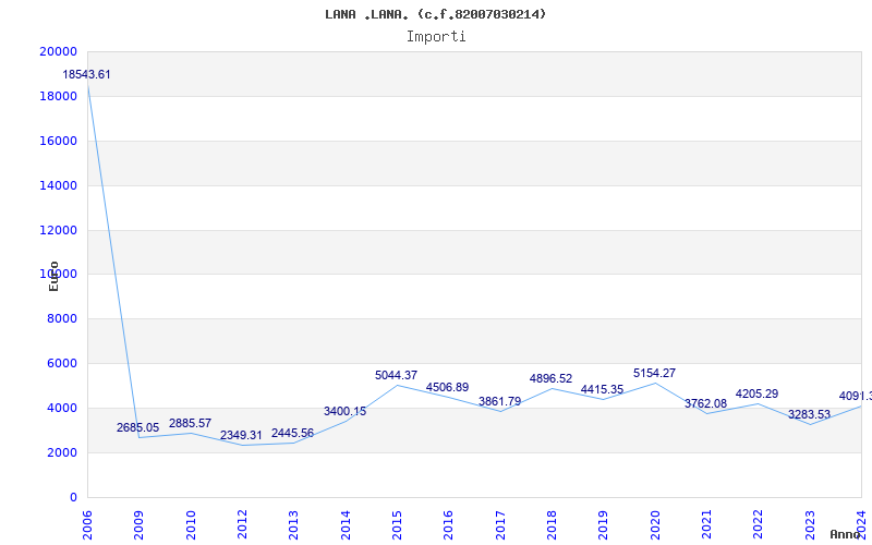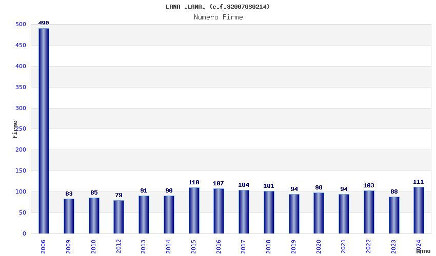 | Anno | Firme | Importi | Media | Naz. | Reg. | Prov. | Comu. |