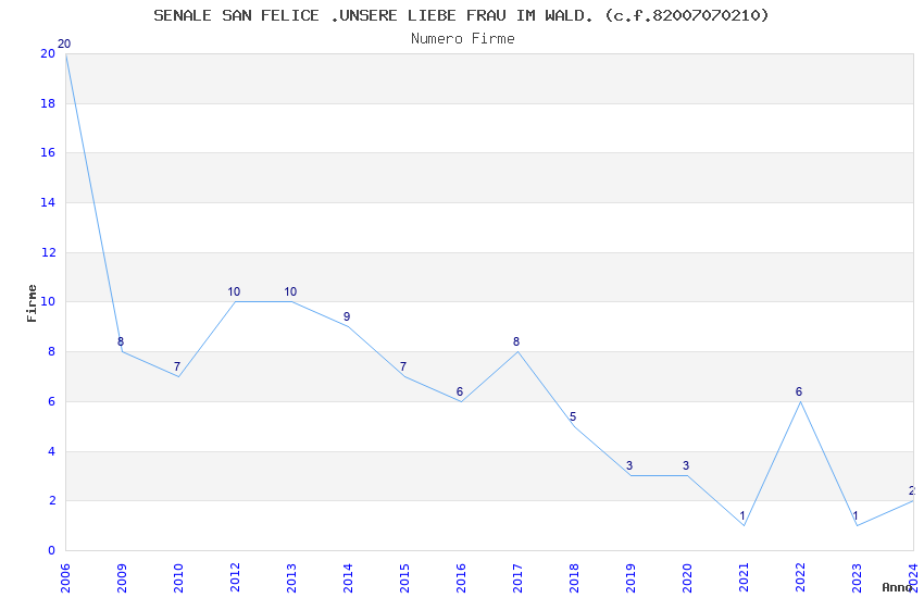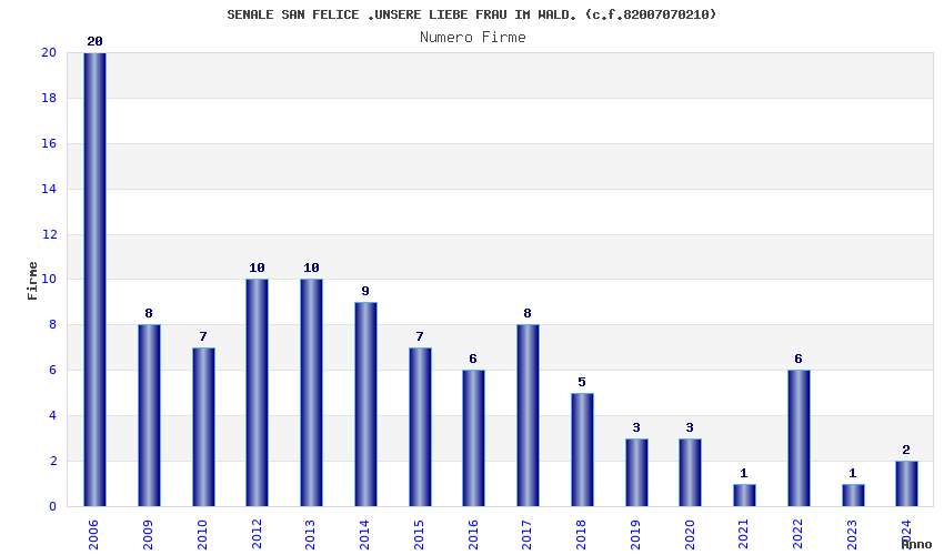 | Anno | Firme | Importi | Media | Naz. | Reg. | Prov. | Comu. |