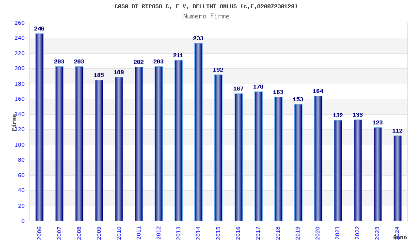 | Anno | Firme | Importi | Media | Naz. | Reg. | Prov. | Comu. |