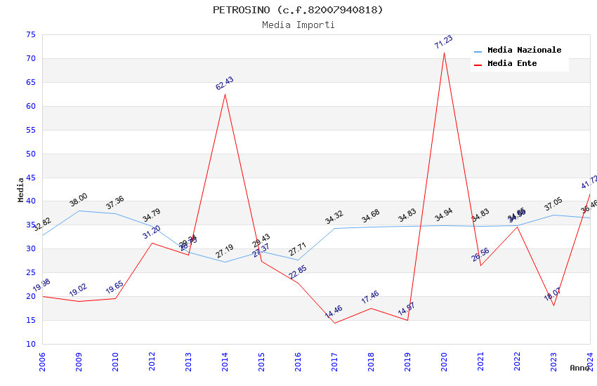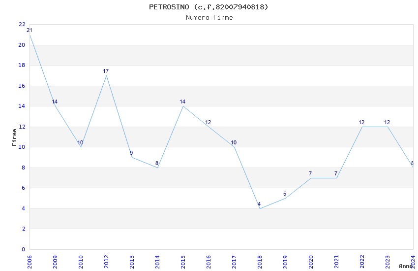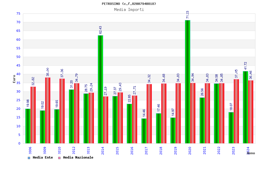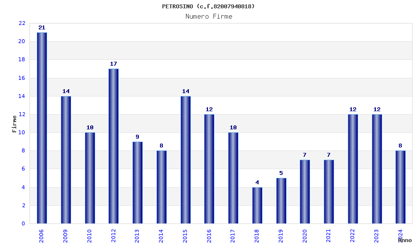 | Anno | Firme | Importi | Media | Naz. | Reg. | Prov. | Comu. |