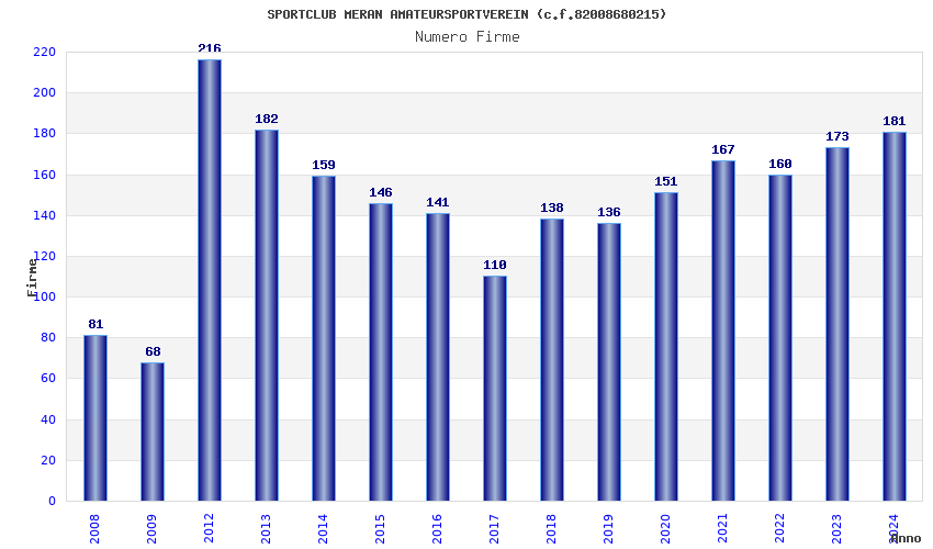 | 2013 | 182 | 8.177,60 | 44,93 | 5.099 | 106 | 57 | 4 |