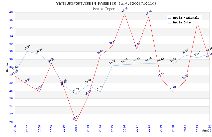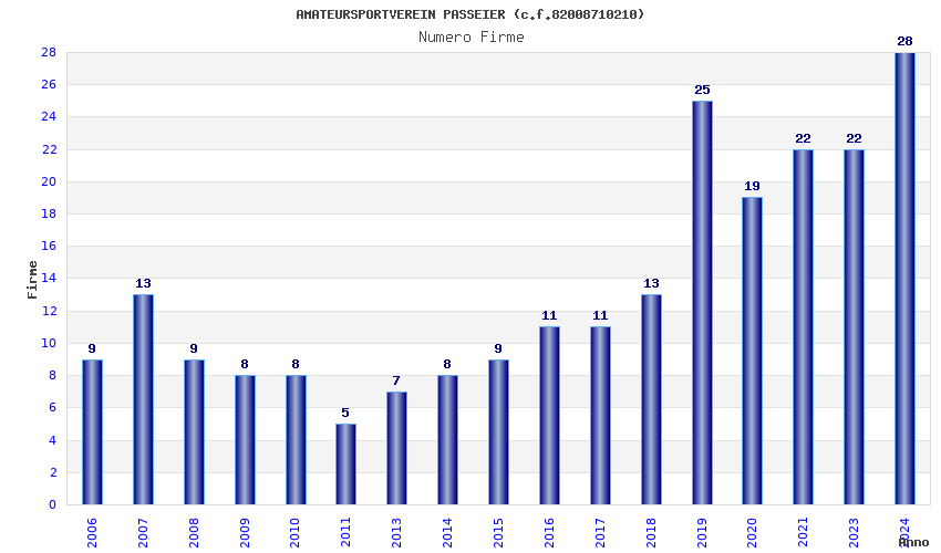 | Anno | Firme | Importi | Media | Naz. | Reg. | Prov. | Comu. |