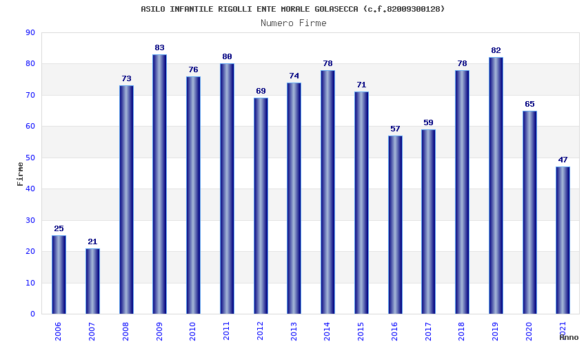 | Anno | Firme | Importi | Media | Naz. | Reg. | Prov. | Comu. |