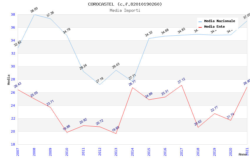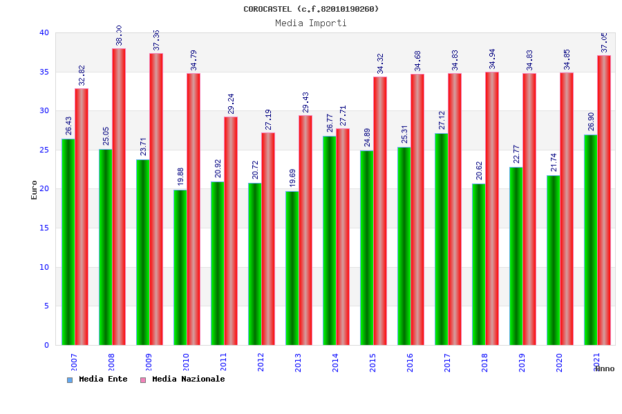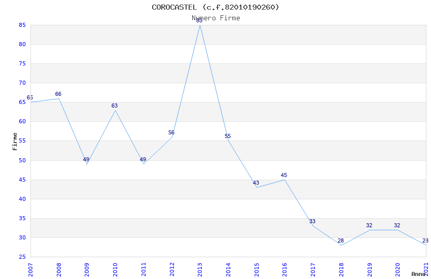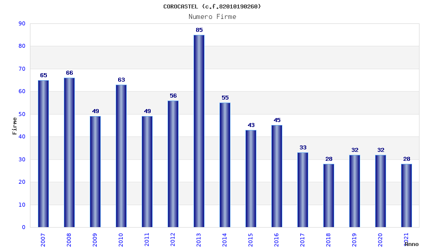| Anno | Firme | Importi | Media | Naz. | Reg. | Prov. | Comu. |