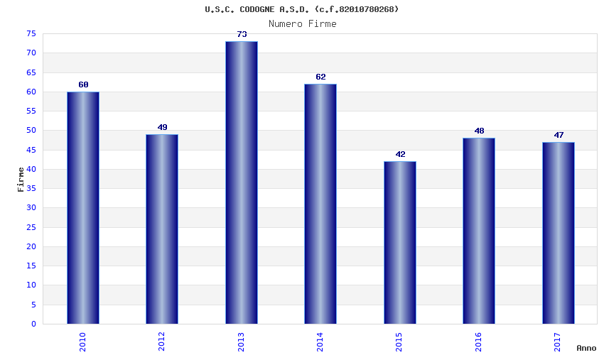 | Anno | Firme | Importi | Media | Naz. | Reg. | Prov. | Comu. |