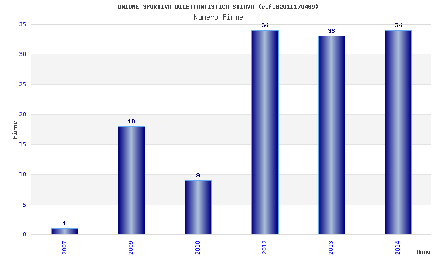 | Anno | Firme | Importi | Media | Naz. | Reg. | Prov. | Comu. |
