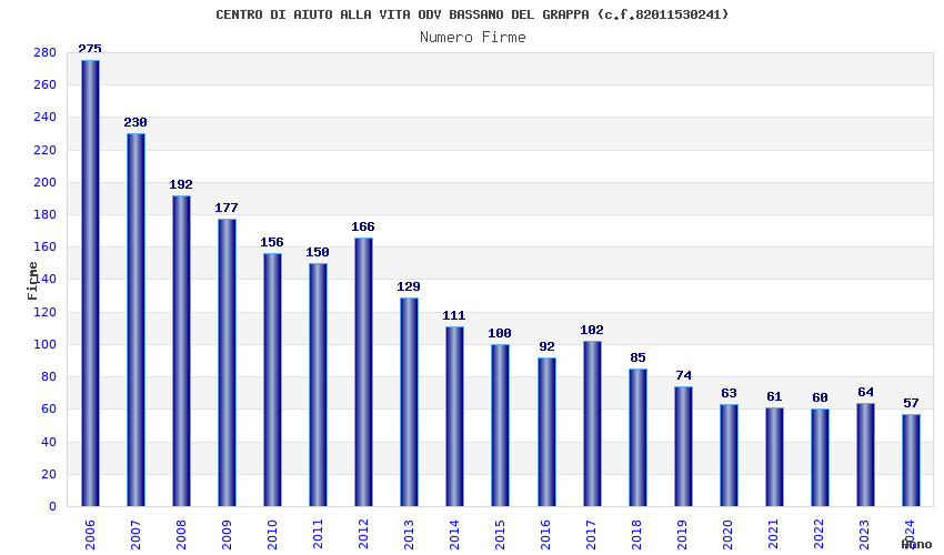 | Anno | Firme | Importi | Media | Naz. | Reg. | Prov. | Comu. |