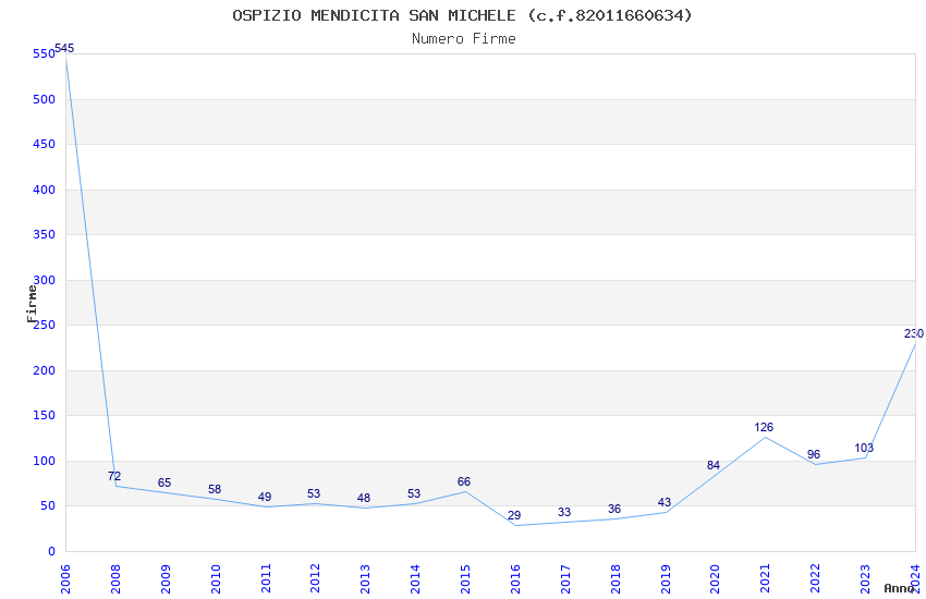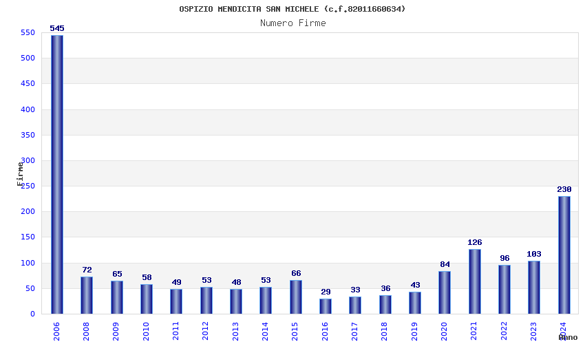 | Anno | Firme | Importi | Media | Naz. | Reg. | Prov. | Comu. |