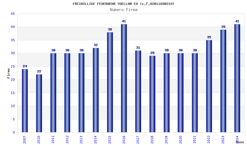 | 2016 | 41 | 1.843,21 | 44,96 | 23.907 | 690 | 352 | 4 |