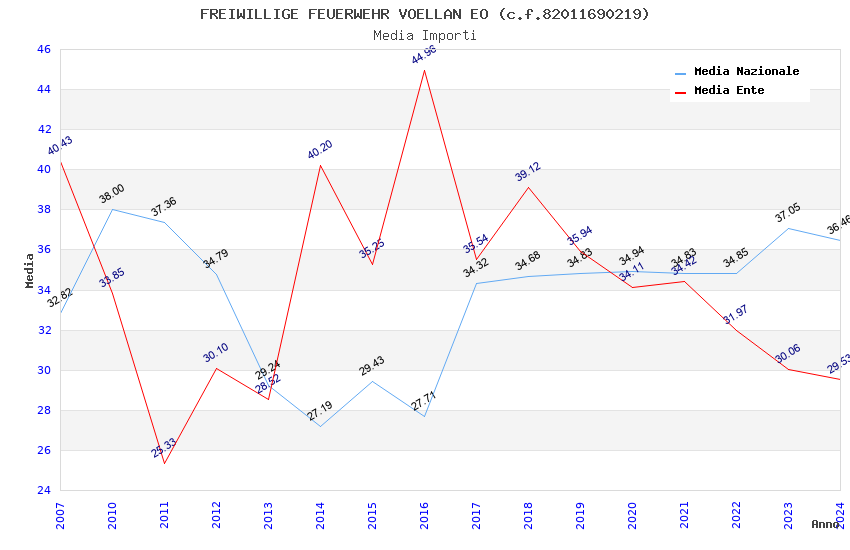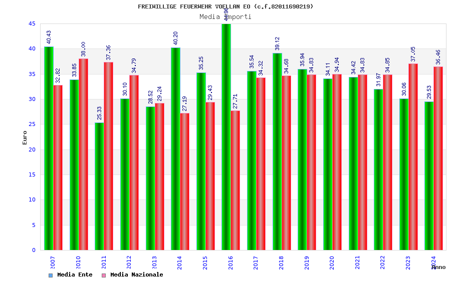 | Anno | Firme | Importi | Media | Naz. | Reg. | Prov. | Comu. |