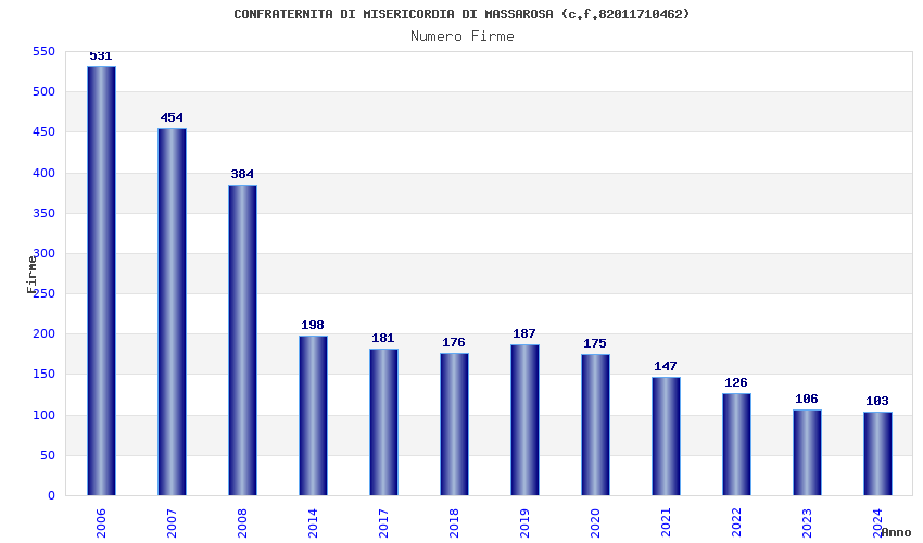 | Anno | Firme | Importi | Media | Naz. | Reg. | Prov. | Comu. |