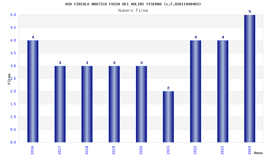| Anno | Firme | Importi | Media | Naz. | Reg. | Prov. | Comu. |